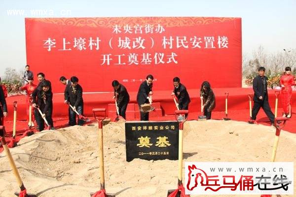 3月25日上午,未央宫街道李上壕村举行安置楼开工奠基仪式。仪式上,副区长陈松林致辞,未央宫街道负责同志及李上壕村两委会、西安祥维实业有限公司负责人作了发言。区委常委、政法委书记张炜宣布项目开工,与会领导为项目剪彩并奠基培土。区委常委、宣传部长张更武,副区长袁晓莉及区人社局、区城改办、区市容园林局、区城管执法局、区大兴办负责同志和部分村民代表参加。该项目由西安祥维实业有限公司开发,计划安置167户、966人,预计2012年12月回迁。(未央宫街道)