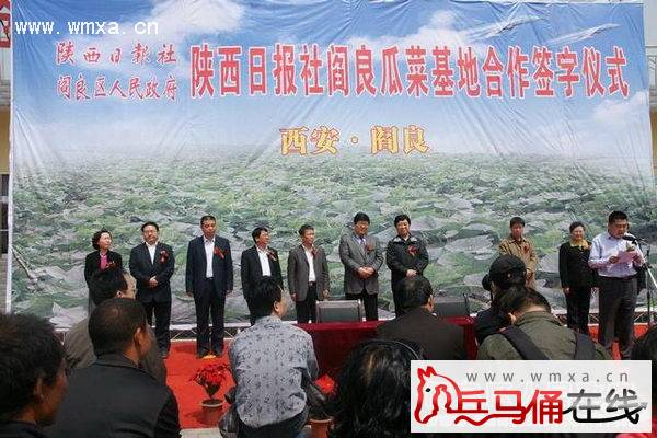 4月16日,陕西日报社阎良瓜菜基地合作签字仪式在农业部蔬菜标准示范园阎良示范基地举行。陕西日报社社长杜耀峰、副社长薛晓燕、区政协主席胡海彦、副区长张军参加了签字仪式。