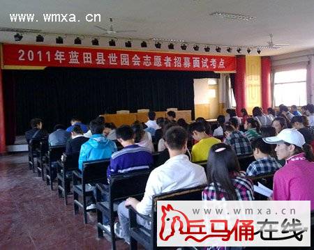 为迎接2011年世界园艺博览会即将到来,4月16日,蓝田县县委会议室内,通过笔试入围的90名志愿者等待参加世园会志愿者面试的选拔。