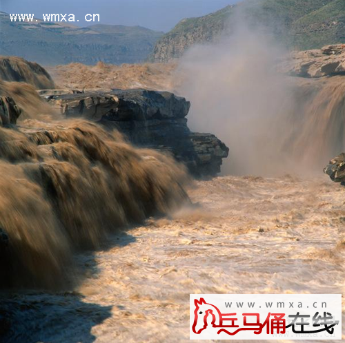 黄河壶口瀑布风景名胜区位于陕西省宜川境内陕峡谷之中,总面积约60平方千米。黄河壶口瀑布声如雷鸣,气势壮观,它以排山倒海的独特雄姿著称于世,是世界上最大的黄色瀑布,也是伟大中华民族的象山西一侧观赏百米悬瀑征。