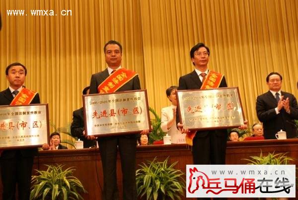 5月20日上午,第七次全国法制宣传教育工作会议在北京人民大会堂举行,司法部部长吴爱英主持。中共中央政治局常委、中央政法委书记周永康出席会议,并作了重要讲话。会上,未央区被中宣部、司法部评为全国法制宣传教育先进区,区委书记杨广亭作为全省唯一区县代表参会并上台领奖。(区委办、区司法局)