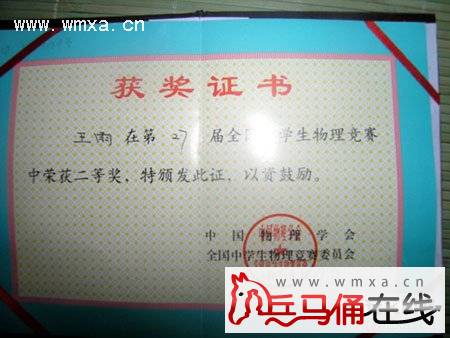 全国物理竞赛二等奖