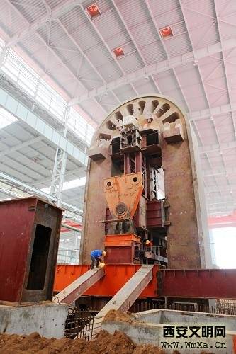 当日,我国最大的拥有完全自主知识产权的4万吨大型模锻液压机项目在西安航空基地(陕西航空经开区)取得重大进展。该液压机拥有世界上最大的承载机架自重2400吨、高21.5米,在历经近两个月的精心准备后,成功安装到位。这一里程碑式的进步,标志着4万吨大型航空模锻液压机项目建设进入倒计时阶段,它将一举填补我国重型锻压装备的空白,为我国大飞机的研制和起飞奠定坚实基础。新华社记者 陈昌奇 摄