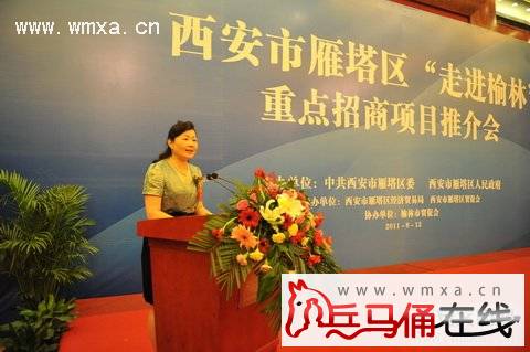 2011年8月12日上午,雁塔区委、区政府在榆林人民大厦成功举办2011西安市雁塔区走进榆林重点招商项目推介会。此次推介会旨在进一步宣传雁塔区的投资环境和区位优势,大力推介重点发展经济板块及招商项目,促进榆林市与雁塔区的经济合作与交流,扩大招商引资规模。