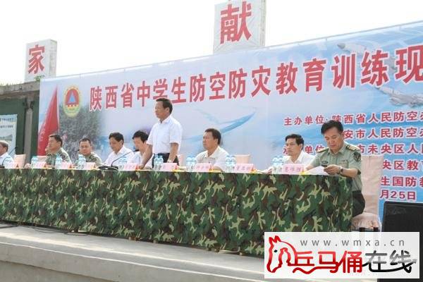 8月25日上午, 陕西省中学生防空防灾教育训练现场会在未央区人防知识教育基地(渭华国防教育基地)举行。会议由省人防办副主任刘训林主持。未央区部分中学生进行了阅兵式、分列式、军事动作汇报表演和防空防灾演练。随后,未央区政府代区长吴智民致欢迎词,省人防办党组书记、主任彭随义在讲话中强调了新时期人防工作的重要性,并从积极学习借鉴先进经验、不断完善防空防灾预案、切实加强疏散地域建设等方面对做好人防工作提出具体要求。兰州军区作战部副部长、人防办副主任盖立民对我区人防工作给予充分肯定,认为我区组织中学生防空防灾教育训练等做法值得借鉴推广。国家人防办训练宣传处处长高亚东;省军区副参谋长兼人防办副主任何炳利、省国防动员委员会综合办主任蔡斌、省国防教育办专职副主任张忠及省民政厅、省教育厅、省人防办有关负责同志;西安警备区副参谋长种方辉及全省各地市人防办主任;未央区政协主席闫文平,区委常委、人武部政委惠作胜,副区长陈松林,区人武部部长李建林及区级有关部门相关负责同志和部分中学师生近1500人参加。(区人防办)