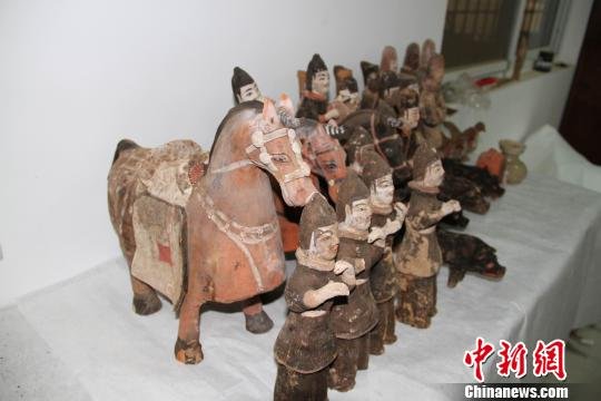 记者28日从西安市文物保护考古所获悉,11月26日,西安洪庆街办王村一建筑工地发现一座十六国时期古墓,经抢救性发掘,目前清理修复出土文物40余件,器类主要有陶器、瓷器、铜器、铁器等,其中大量彩绘陶俑色彩鲜艳、形象生动。有关专家称,在西北地区发现保存完好、鲜艳如初的十六国时期彩绘陶俑,尚属罕见。